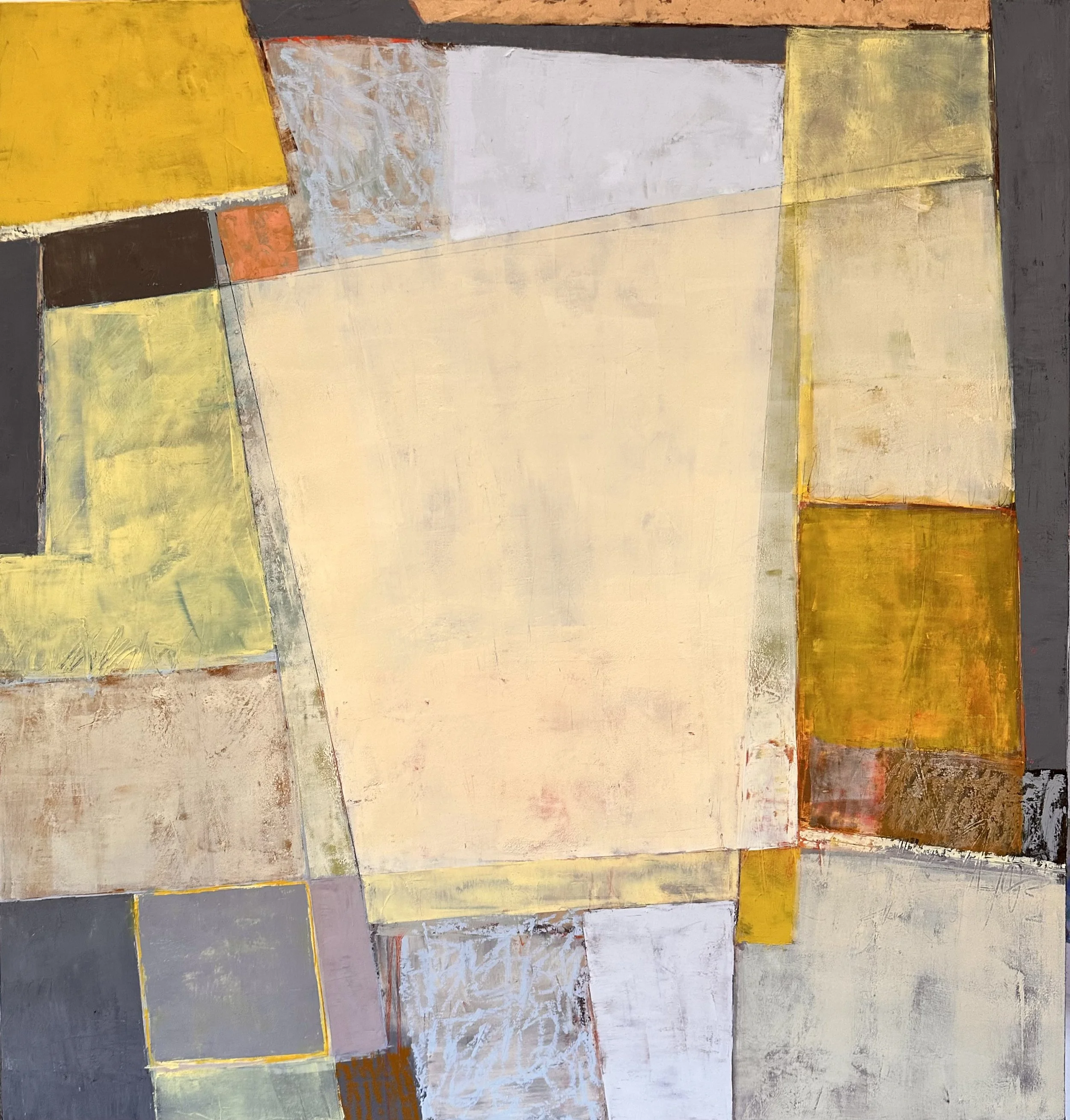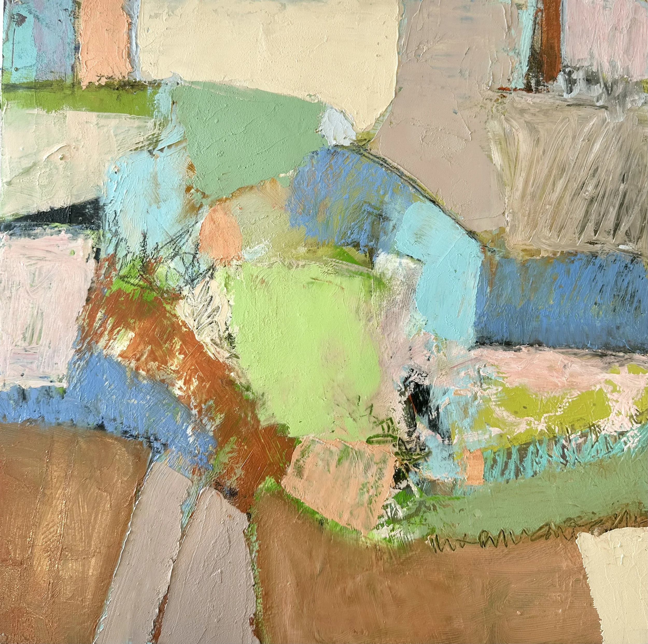 I think this is the perfect place to include a contemporary artist who works with abstraction and a sense of place! Michael clearly has a joy of color and uses it masterfully. Look here at his color combinations and limitations. He works in series and explores dozens of color options within each limited palette. He also names these series very specifically which gives us that sense of place, for example, “Country Living” and “Lakeside.”