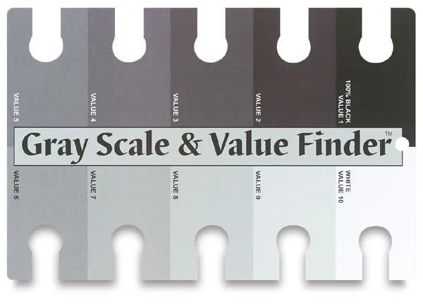 Degree of lightness or darkness of a color. The color (hue) is not important in this definition, only how light or dark the color is relative to white and black. (Think of a black and white photo of your painting).